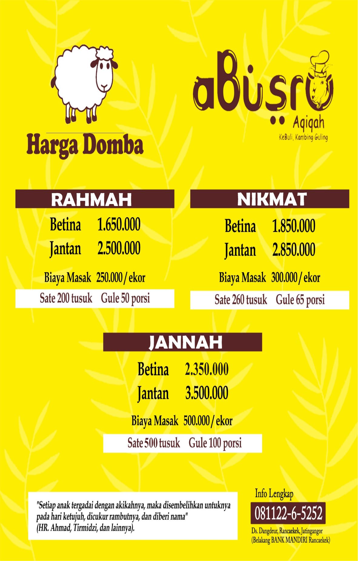 Dengan Harga Paket Aqiqah Yang Murah Masih Dapat Bonus Yang Banyak! Tanpa Syarat